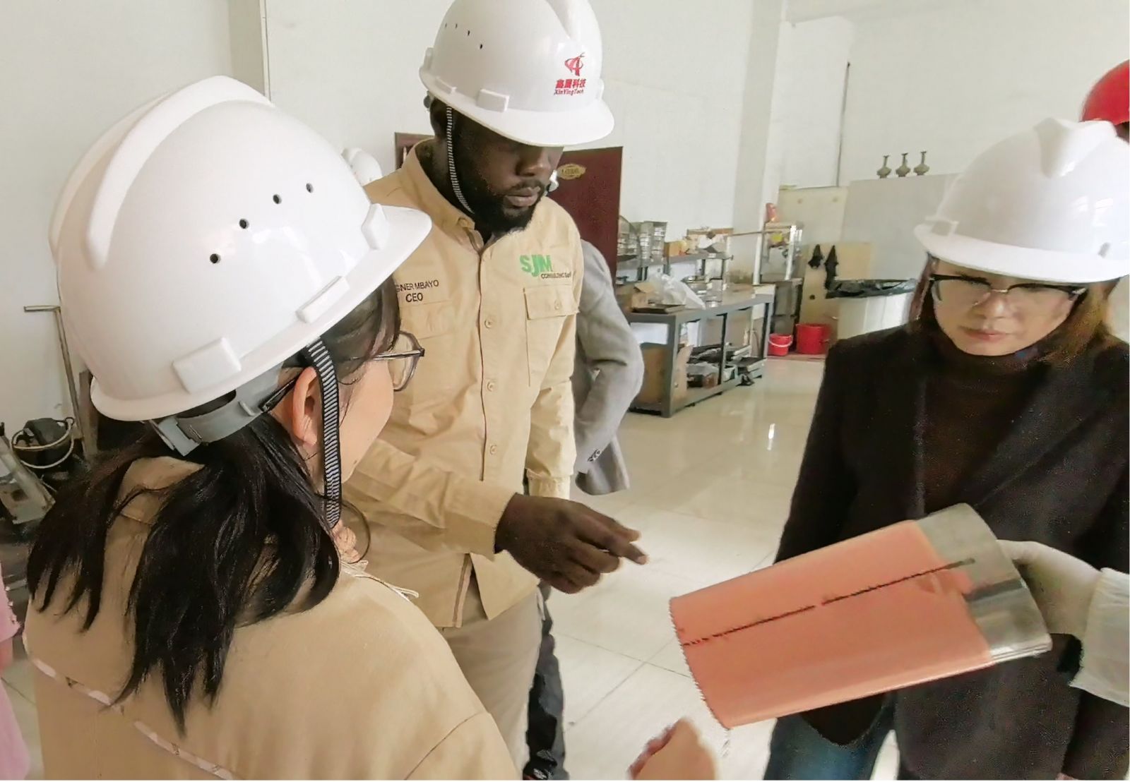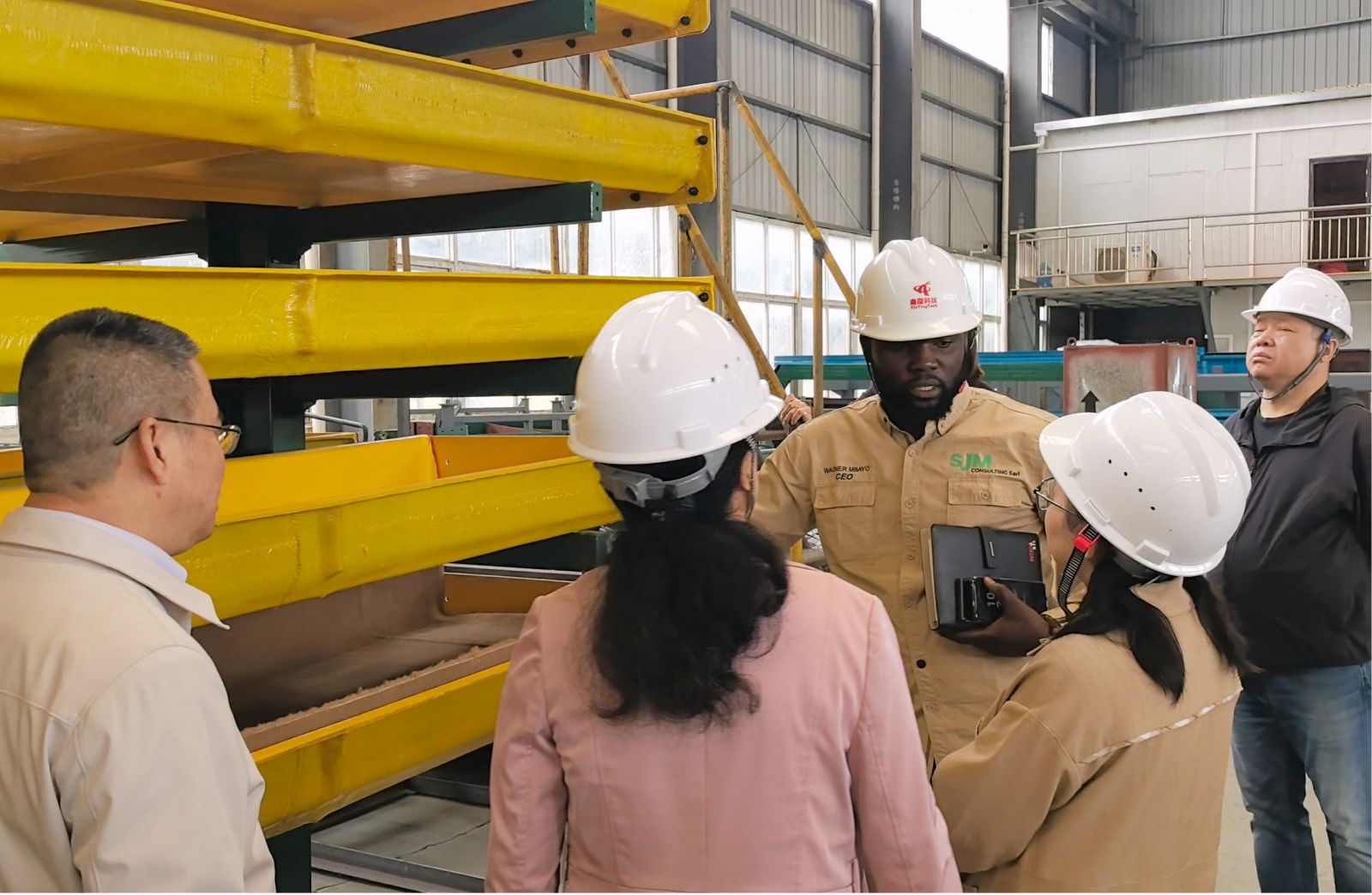 2025年10月31号,来自刚果金的客户到访湖北鑫鹰科技股份有限公司,实地考察铜矿和金矿选矿生产线系统。